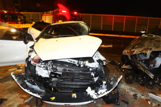 BMW 與 FOCUS 失控擦撞高架基座 BMW起火駕駛成焦屍