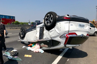 國道擦撞 CRV 翻車1死4傷 母帶子出遊爆頭慘死