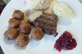 澳洲牛腰脊搭瑞典肉丸佐奶油醬配薯泥