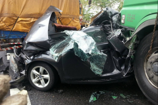 硼鋼功勞 ?! 國道四車追撞 FOCUS 夾成鐵餅 夫妻僅輕傷