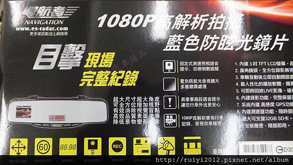 瑞奕汽車精品 時間: 2013-12-16 11:14 PM 標題: [搶鮮上市] 導航者V8 1080P GPS測速 防炫光鏡片後視鏡型