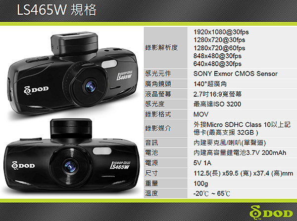 瑞奕汽車精品 時間: 2015-6-11 06:21 PM 標題: [售完] DOD LS465W 功能接近完美的行車紀錄器