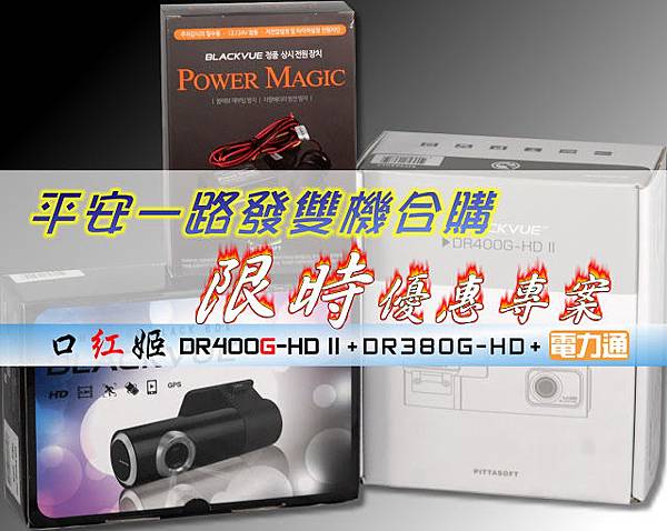 為了因應車友在前、後檔風玻璃上,皆想裝置行車紀錄器的需求,維迪歐科技自2013年1月1號起至2013年2月28號,推出DR400G-HD II+DR380G-HD維迪歐祝您平安一路發雙機合購專案