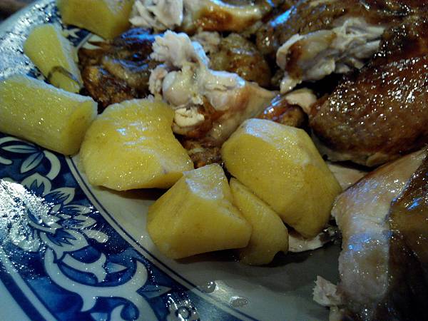 黃色的是番薯,用雞油雞汁悶出來的黃番薯,很香很好吃!