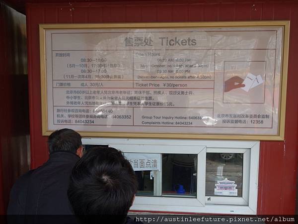 售票處,一張票30元人民幣