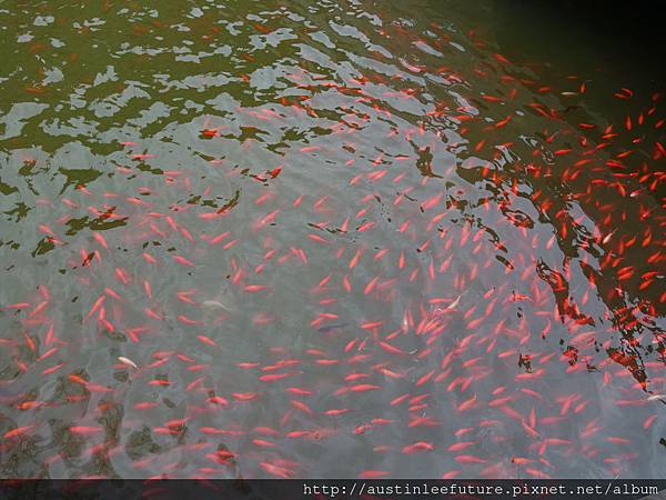 旁邊的水池裡有很多小魚