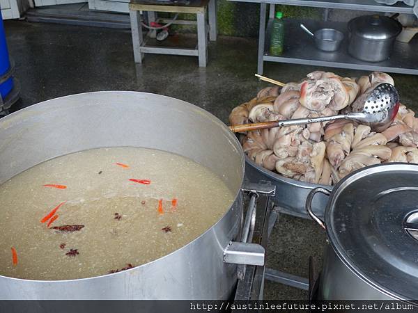 後方廚房區域,正在準備當天要用的豬腳與食材