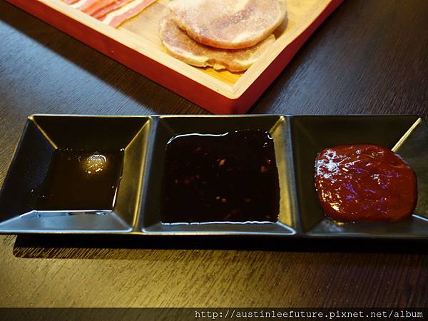 然後再沾上三種醬料,或許再搭配一些青菜或是配料,