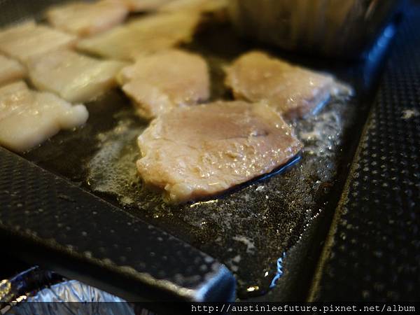 厚的豬五花會出油,空的鋁箔小碗是接油用的