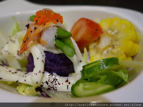 除了蝦還有蝦卵跟鮭魚卵,也算不錯的一道啦 XD