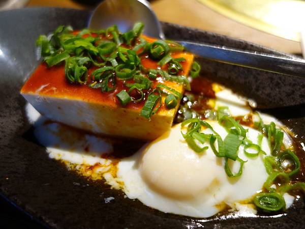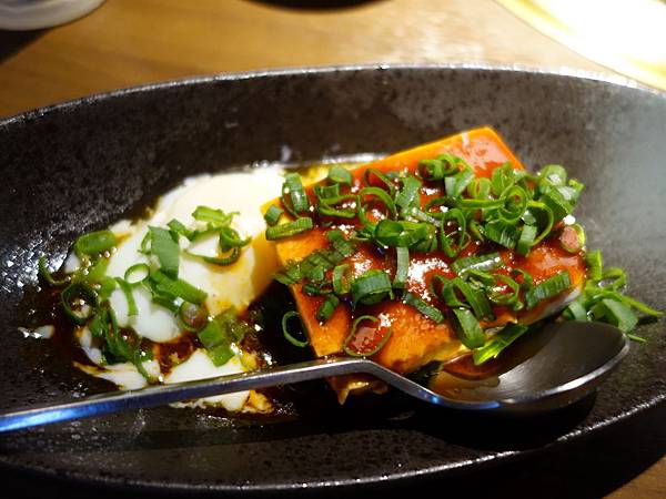 整顆溫泉蛋以及嫩豆腐,加上特調的醬汁與蔥花,