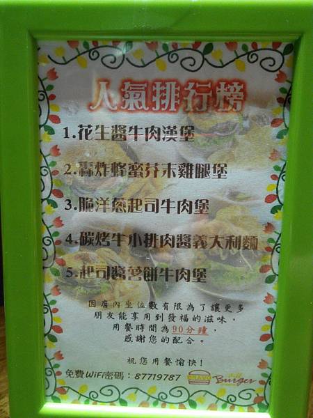 桌上小立牌,說明最熱銷的商品以及用餐時間90分鐘