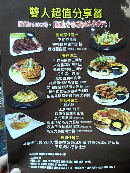 還有兩人套餐的菜單,感覺該有的都有,是不錯的選擇