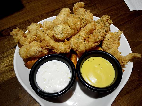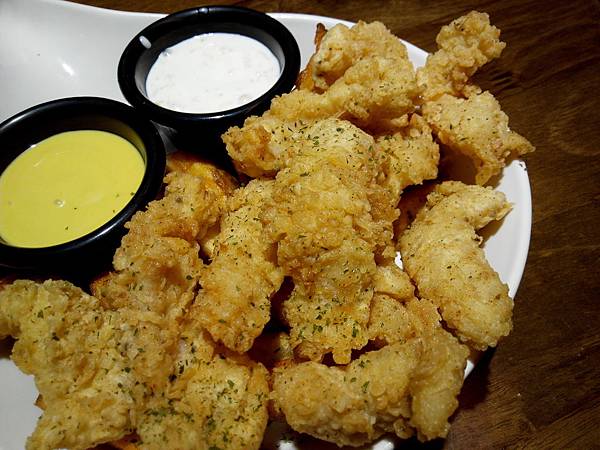蜂蜜芥茉醬以及洋蔥塔塔醬兩種滋味搭配,真是美味!