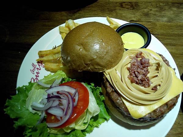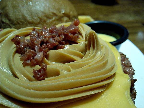 現烤出來的牛肉,加上融化的起司,上面還有那神奇的花生醬,