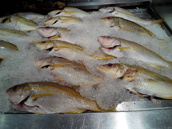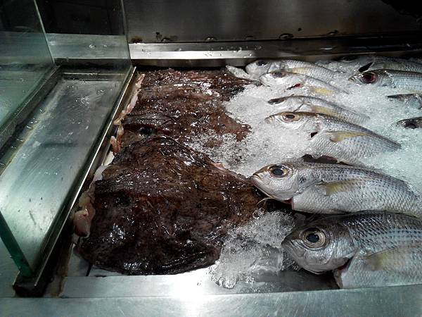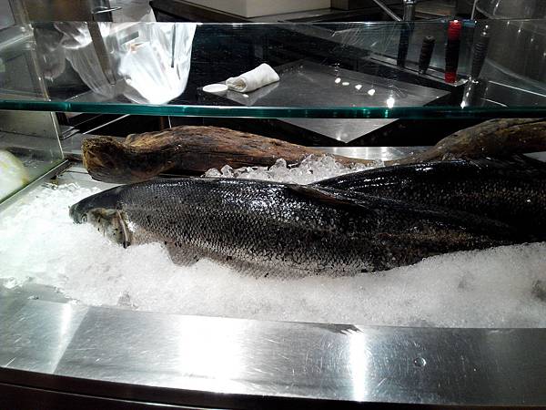 有擺上整條的魚當裝飾品,這是鮭魚吧