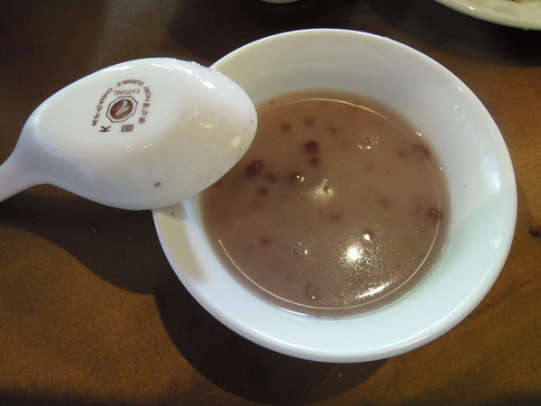 桌菜有附點心,今天是熱紅豆西米露,還ok囉~