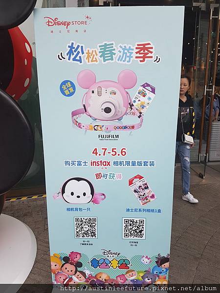 在外頭就看見了4月7日全球首發的 富士/迪士尼 TSUM TSUM 聯名款米奇造型拍立得看板