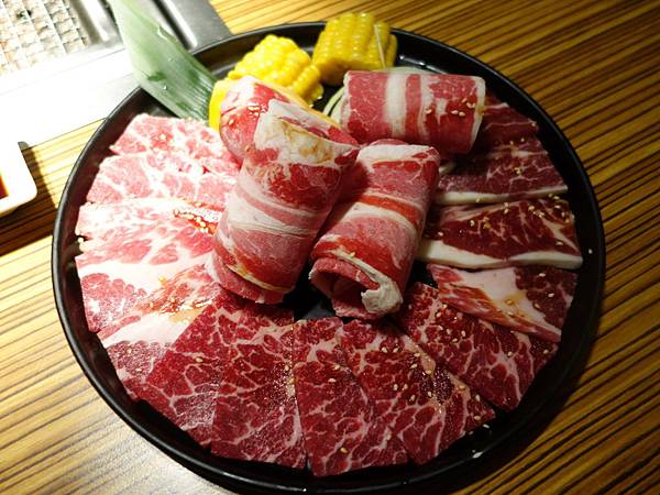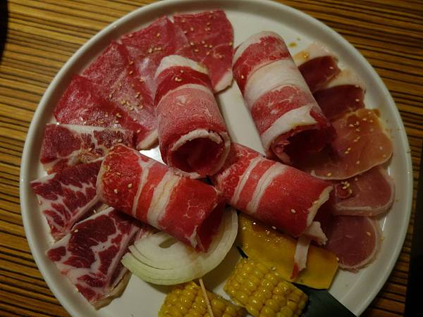 因為加上兩盤贈送的肉品(牛五花以及松阪豬),