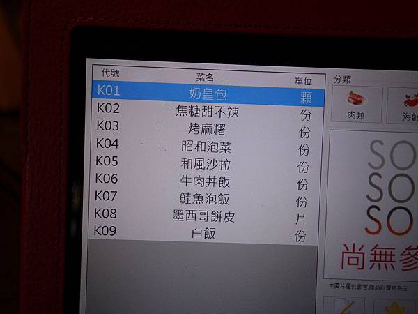 烤肉夾與菜單,菜單就跟網頁版的一樣