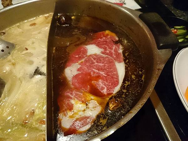 當然,這肉還是很威啦,一片就快佔滿半鍋了