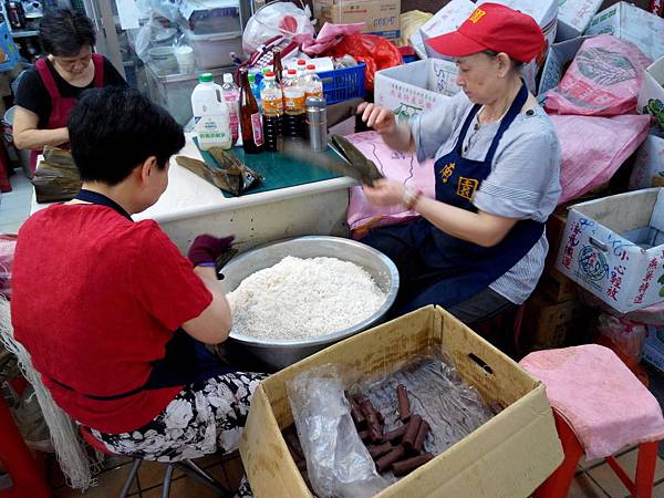 這邊則是在包湖州鮮肉粽,也是最傳統道地的湖州粽