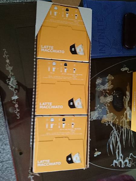 最上面是美式的三盒箱,左邊是卡布奇諾的三盒箱