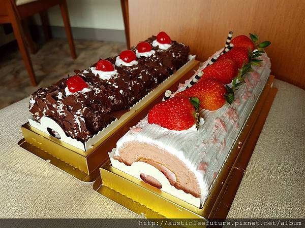 哇!當日新鮮手作的蛋糕!一聽到就覺得新鮮好吃,目前正逢草莓季,因此選擇了草莓條以及巧克力口味的黑森林條兩種