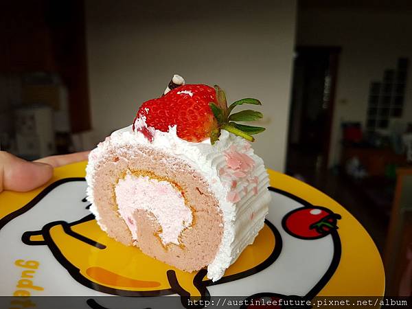 先看看草莓條,切片後原來草莓風味鮮奶油中間還加入了進口的草莓,使得整體的草莓風味更加濃郁