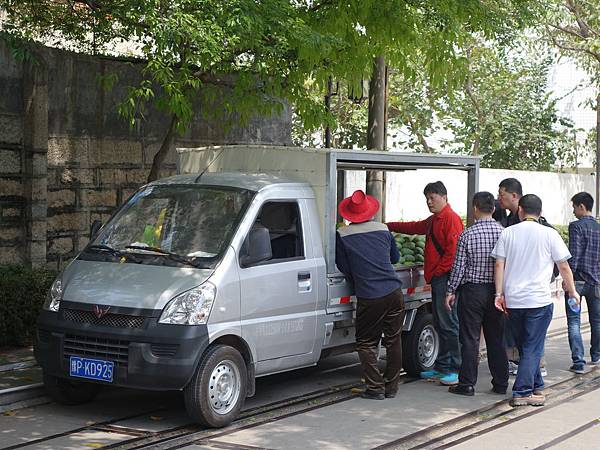 在公交車站牌旁邊,也有這種專賣給觀光客的水果小販,