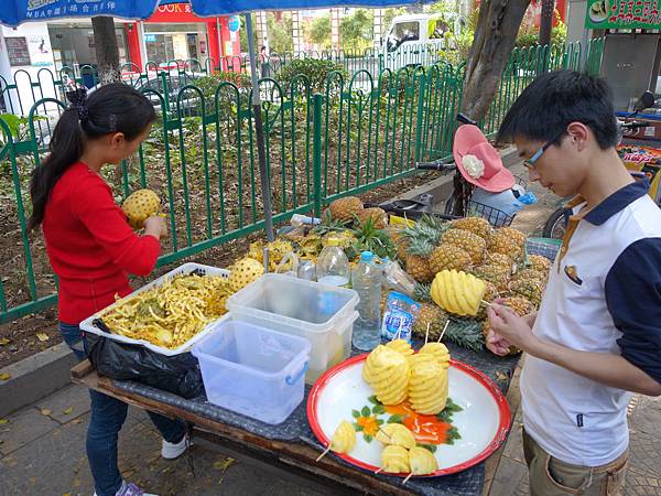 現削的鳳梨很厲害,可以一顆顆賣,也可以賣1/4顆,