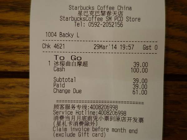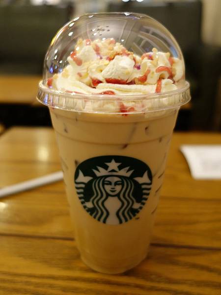 點了一杯特大杯的 冰櫻桃曲奇白摩卡 39元人民幣