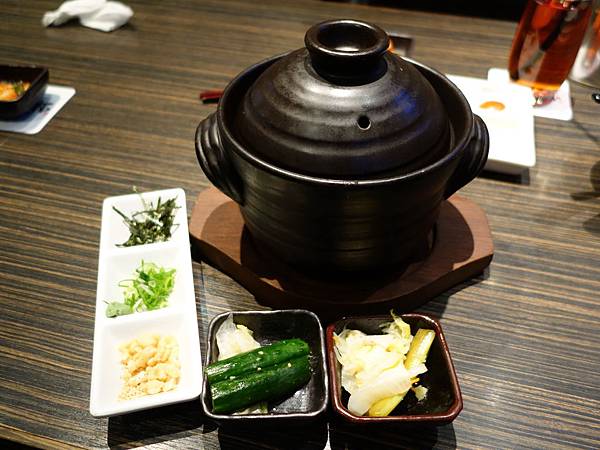土雞肉釜飯 還有配茶泡飯的料,以及日式醃漬小菜