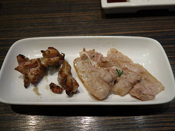 左邊是鹽味雞腿肉,右邊是上等豬五花