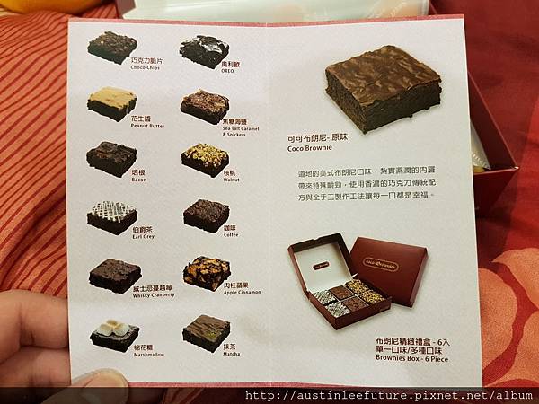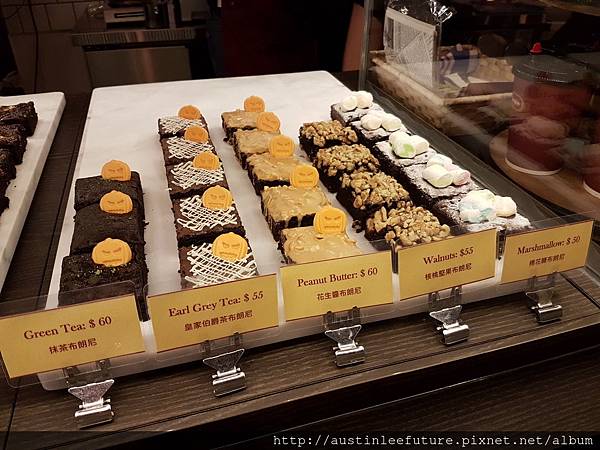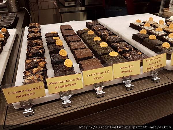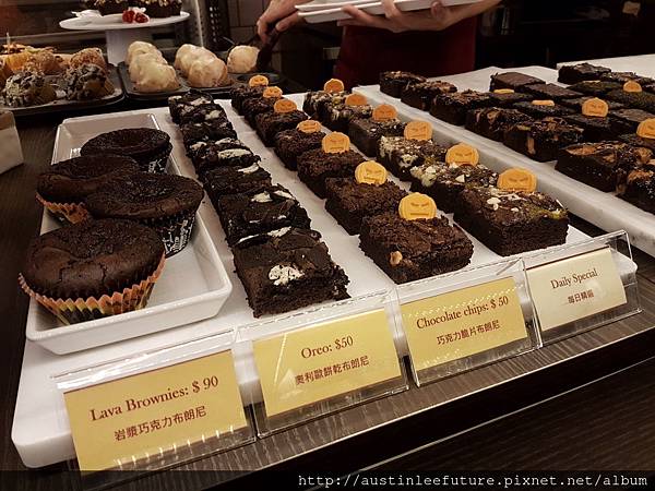 布朗尼商品有很多口味,價位大多是每一塊50元台幣上下,岩漿巧克力布朗尼是其中例外,比較特殊也比較貴些