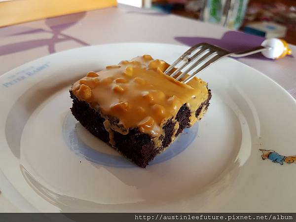 在國外花生醬常常配巧克力,甚至還有吐司花生醬配果醬的吃法,所以在外國這樣的組合是見怪不怪,其實我個人嘗試下的感受,我個人會覺得花生醬的風味占比比較大,有點搶了布朗尼的風頭,不像黑芝麻布朗尼可以調和黑芝麻與巧克力有加乘效果,這一款花生醬口味主角似乎成了花生醬,當然喜歡花生風味的朋友應該會特別喜歡