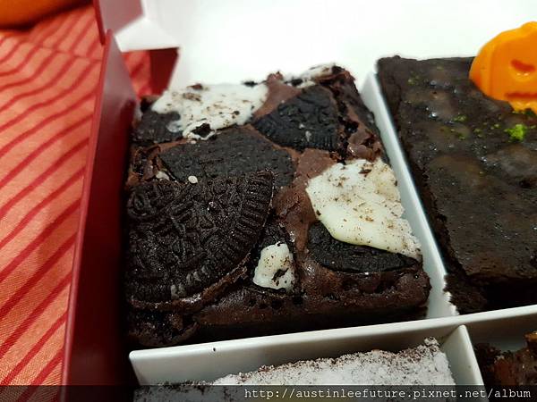 每日精選口味這一天是含有乳酪與堅果的口味,鹹香滑順的乳酪包覆在香甜濕潤的布朗尼中,外頭點綴了些與堅果,多層次的口感與味覺很適合不喜歡太甜的朋友品嘗
