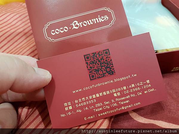 台大商圈附近看到這樣與國外同步流行的店家並不意外,美國的大城市常見這些甜點小店,不管是布朗尼或是杯子蛋糕都是很流行的,相較於杯子蛋糕我個人覺得布朗尼實在且好吃很多,尤其是精美的禮盒包裝加上合理可接受的價位,相較起一顆貴鬆鬆的馬卡龍,可可布朗尼的禮盒真的是有裡子也有面子的好選擇,而且獨特且繽紛口味以及大人喜歡的威士忌口味,我個人是覺得這一家值得來試試,也很適合買來餽贈親友