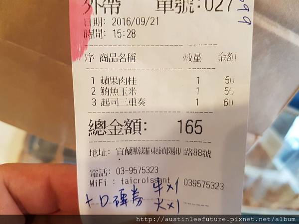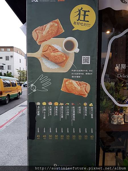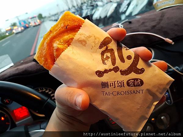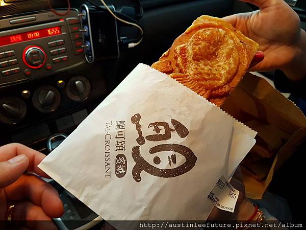 我是提前預訂好五隻鯛可頌,飲料的部分就是到了現場請店家製作,所以做好之後就外帶到車上先拍照(路邊暫時臨停)
