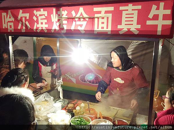 烤冷麵及肉夾饃的初體驗,都是在濱江道這裡,首先說說烤冷麵吧,在2015年11月底冷得要死零下六度的天氣裡,晚上沒東西吃要怎麼辦呢?就是走到附近的濱江道找看看還有沒有小攤子