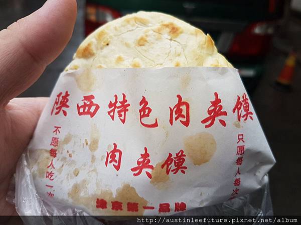 既然小哥說了就要尊重他啦,就沒有再拍了,只有拿到我的肉夾饃後來拍照