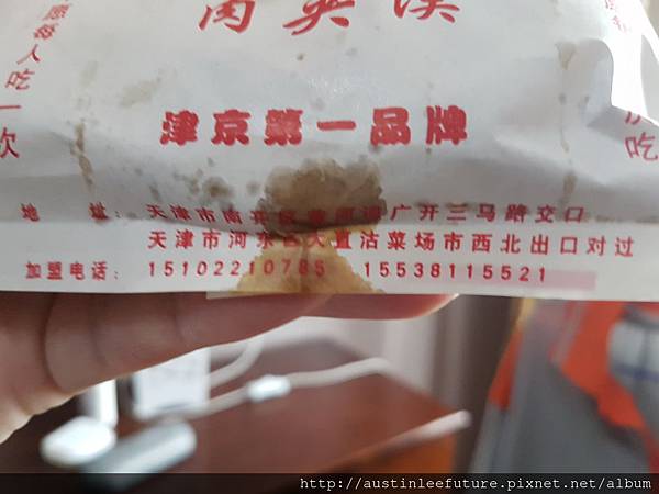 因為當天太冷了,所以沒有針對買到手的烤冷麵特別拍照,回房後只顧吃也忘了拍,若是冬天還有天津再拍來介紹給各位看看阿~