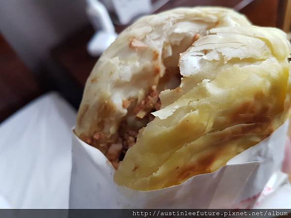 內部的料也是類似,只是比較可惜,肉沒有那麼濕潤,可能是沒有淋上一點肉汁,而且餅皮本身做的沒有陝西特色肉夾饃好