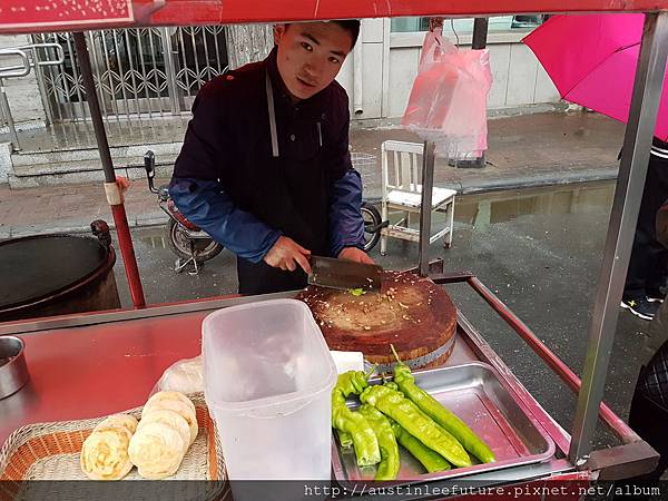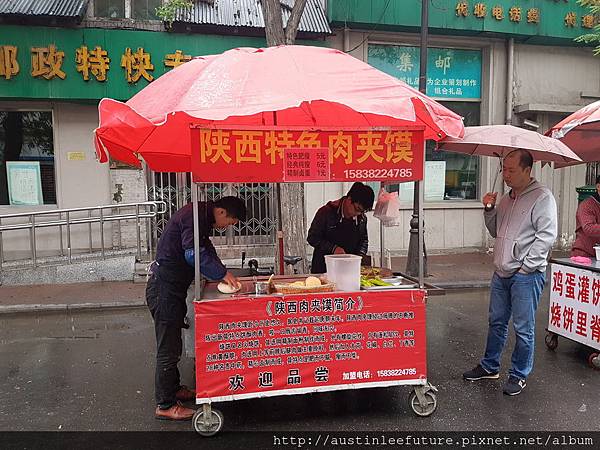 不過第二天就只有買路邊小攤陝西特色肉夾饃,小哥賣的那一攤