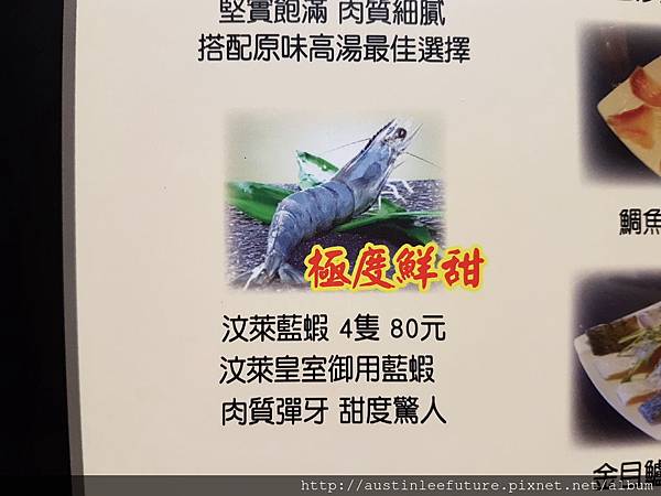 之前本來要點汶萊藍蝦,但服務人員建議之下點了天使紅蝦,這次就來點汶萊藍蝦看看吧