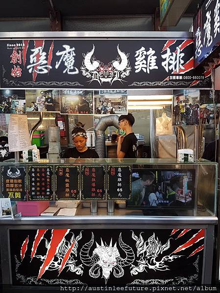 這是台中逢甲夜市逢甲歡樂星入口對面的創始惡魔雞排攤位