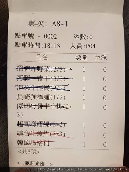 其實一方面是吃飽了,另一方面則是麵體本身及湯都有點過鹹不太合我們口味,所以只有把料吃完,湯喝兩口麵吃一半,這一碗成為當日唯一有剩沒吃完的一道菜