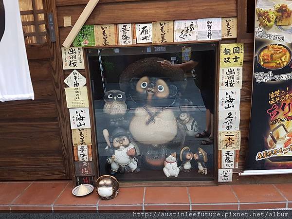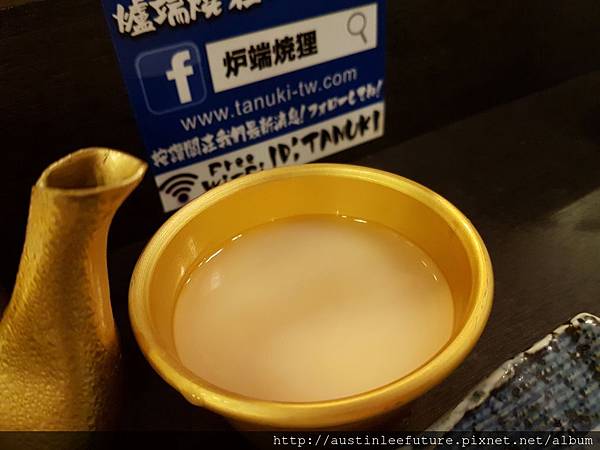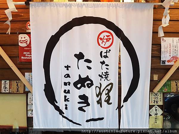 店名叫狸爐端燒,所以胖胖的狸就是店家的吉祥物了吧,跟我這貍老闆還有那麼點像啊 XD (請自動忽略右側胖子的倒影....)