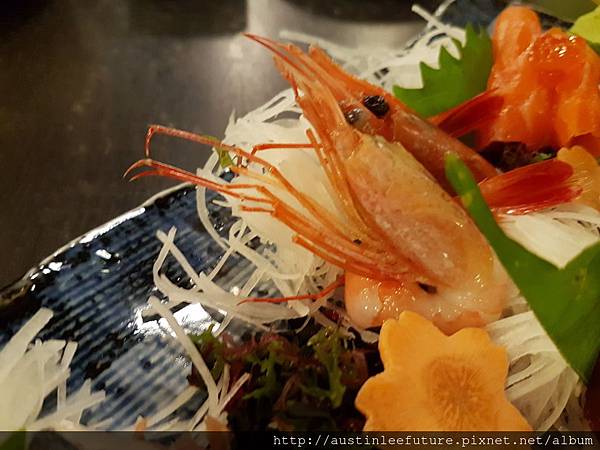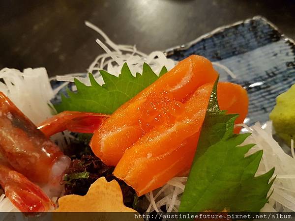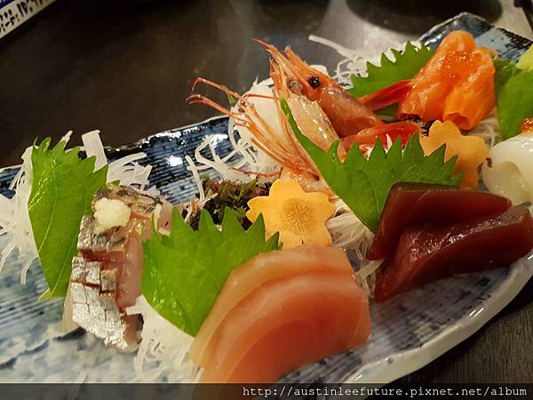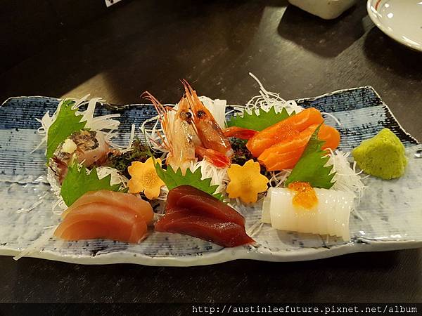 小菜很快就被我吃完了,接下來上了一盤很繽紛的綜合生魚片