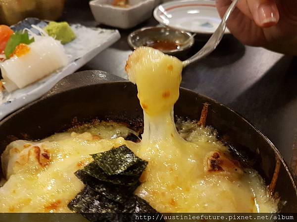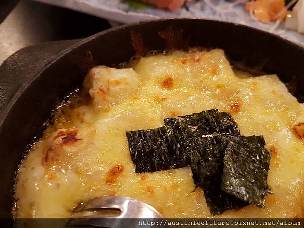 稍微烤到焦香的鹹香起司搭配Q軟有勁的麻糬,尤其是以石鍋裝盛,底部及邊邊的起司稍微焦黃的香氣真的非常開胃!